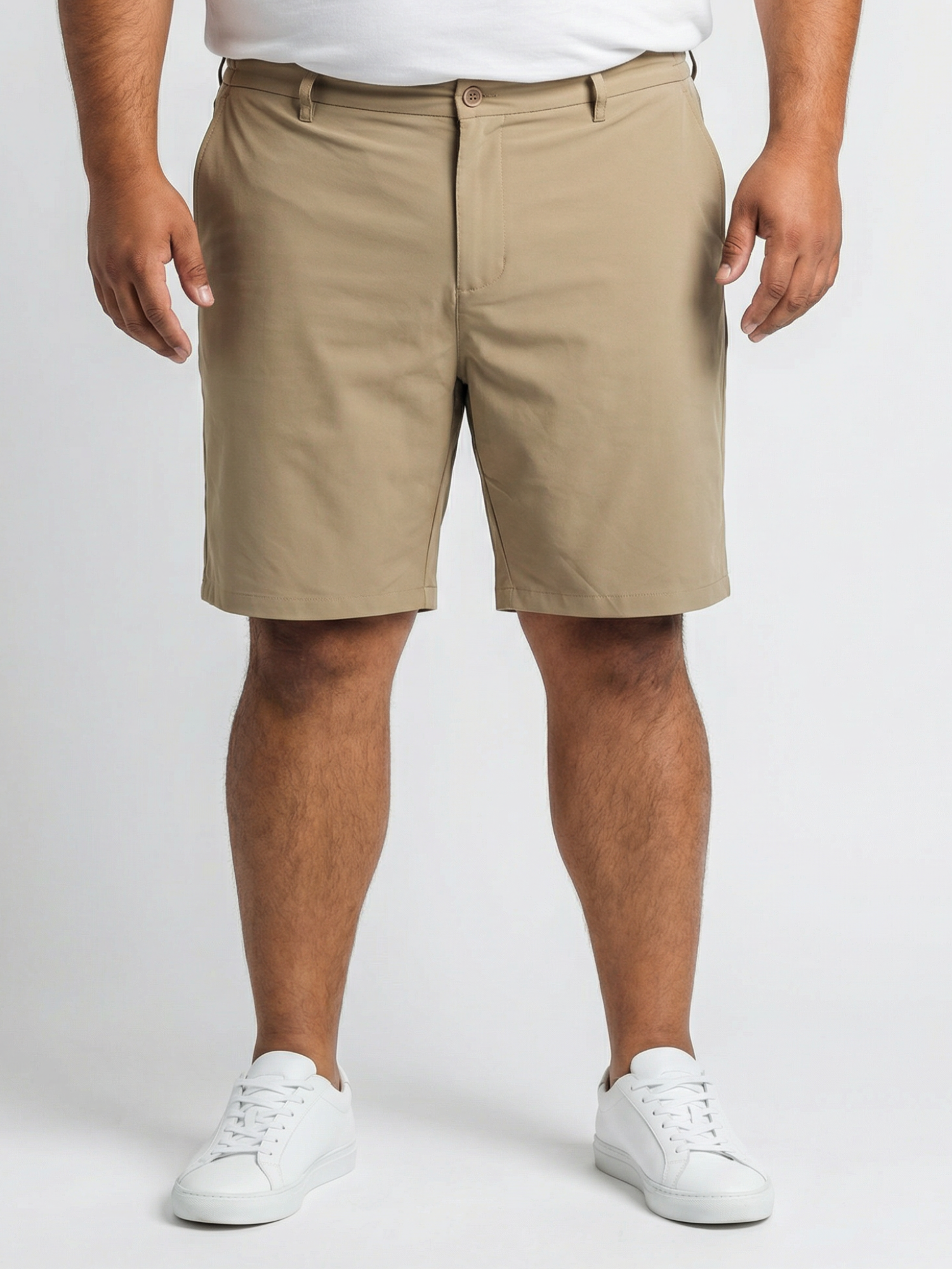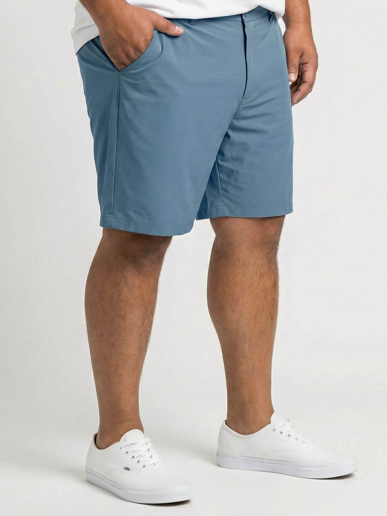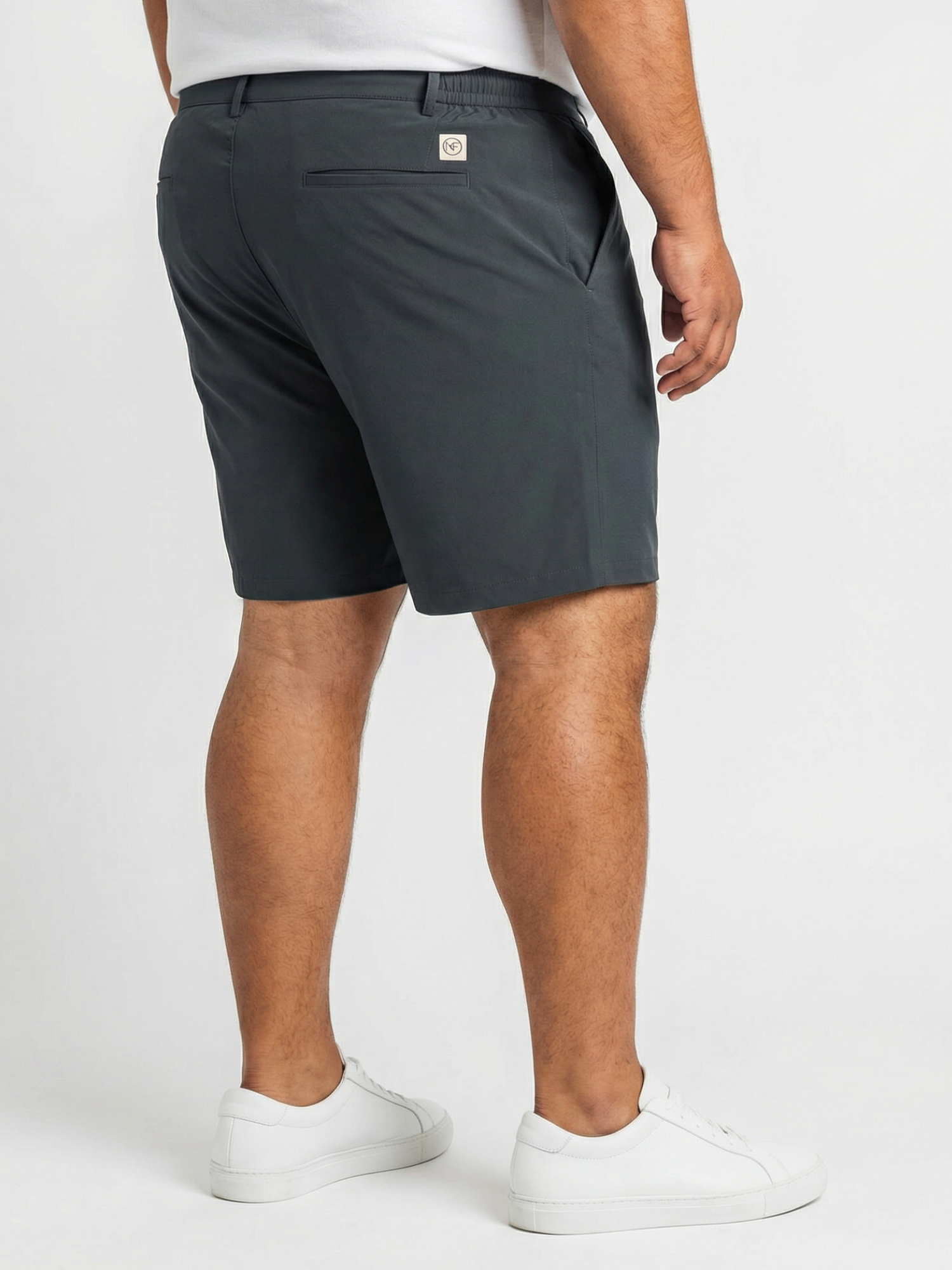 The Byron Short was built for Big & Tall proportions, balancing comfort and a modern silhouette. It offers extra room in the seat and waist, complemented by a flexible waistband that moves with you throughout the day. The thigh is gently tapered to create a more refined, flattering look without compromising mobility. Combined with a high-stretch fabric, this design allows men with larger legs to enjoy a tailored appearance that still feels exceptionally comfortable.
