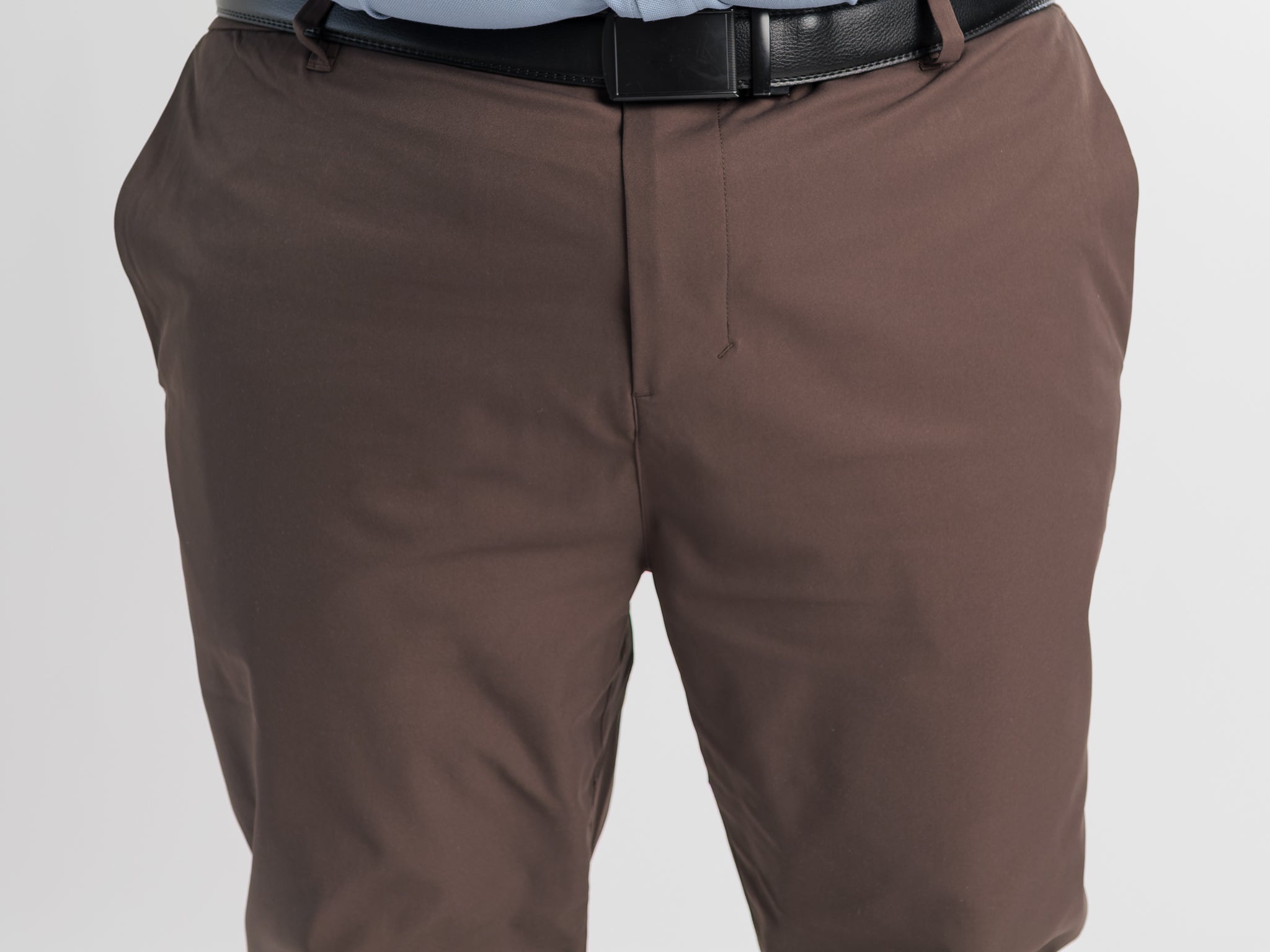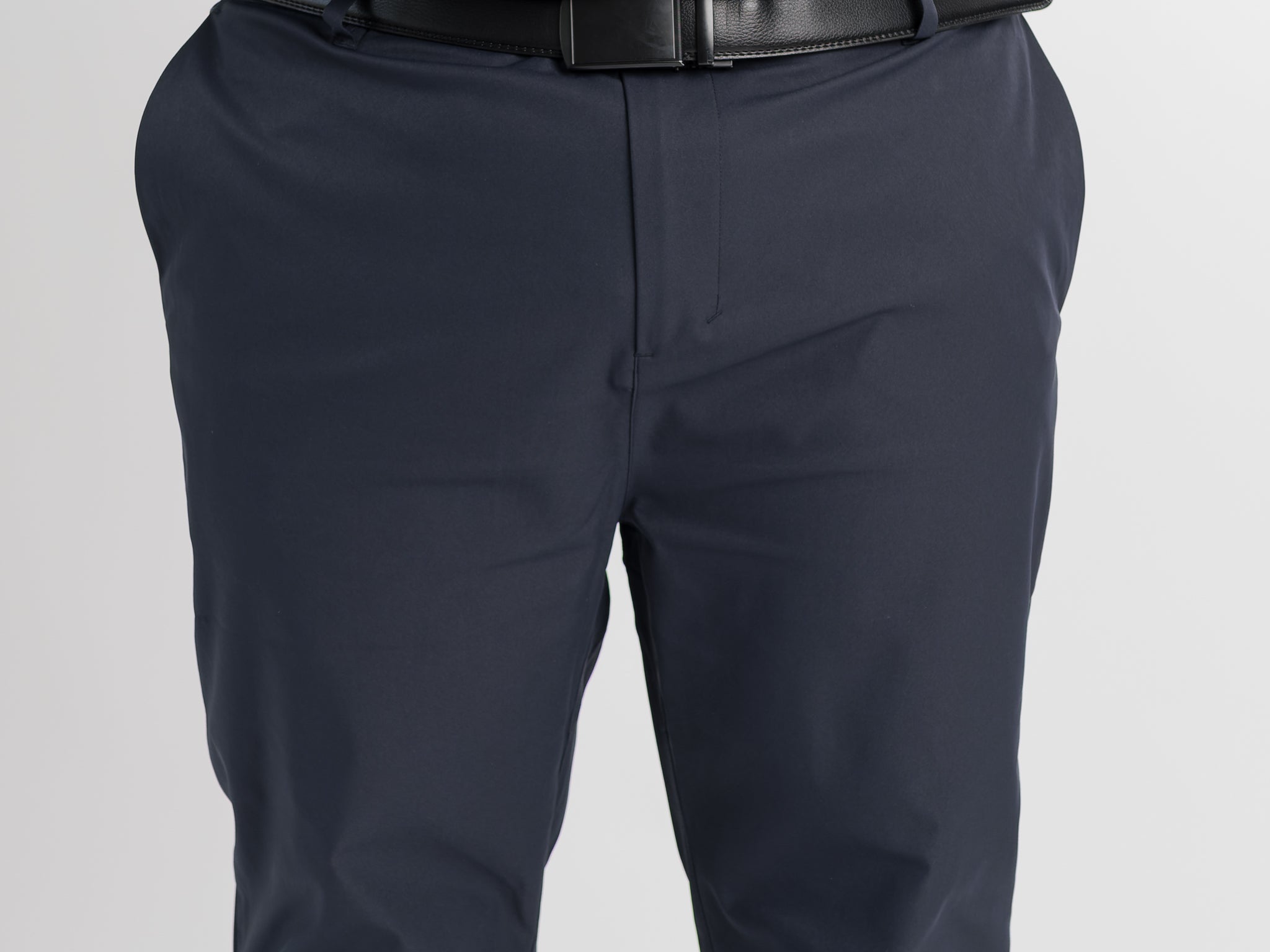 At the microscopic level, Stryde’s strength lies in its stretch yarn technology. Each polyester filament is engineered to provide dynamic elasticity, allowing the fabric to move with the body rather than against it. The weave expands and contracts in response to motion, reducing friction and restriction through the seat, knees, and hips. This results in a pant that maintains a consistent fit and shape, no matter how much you move.
